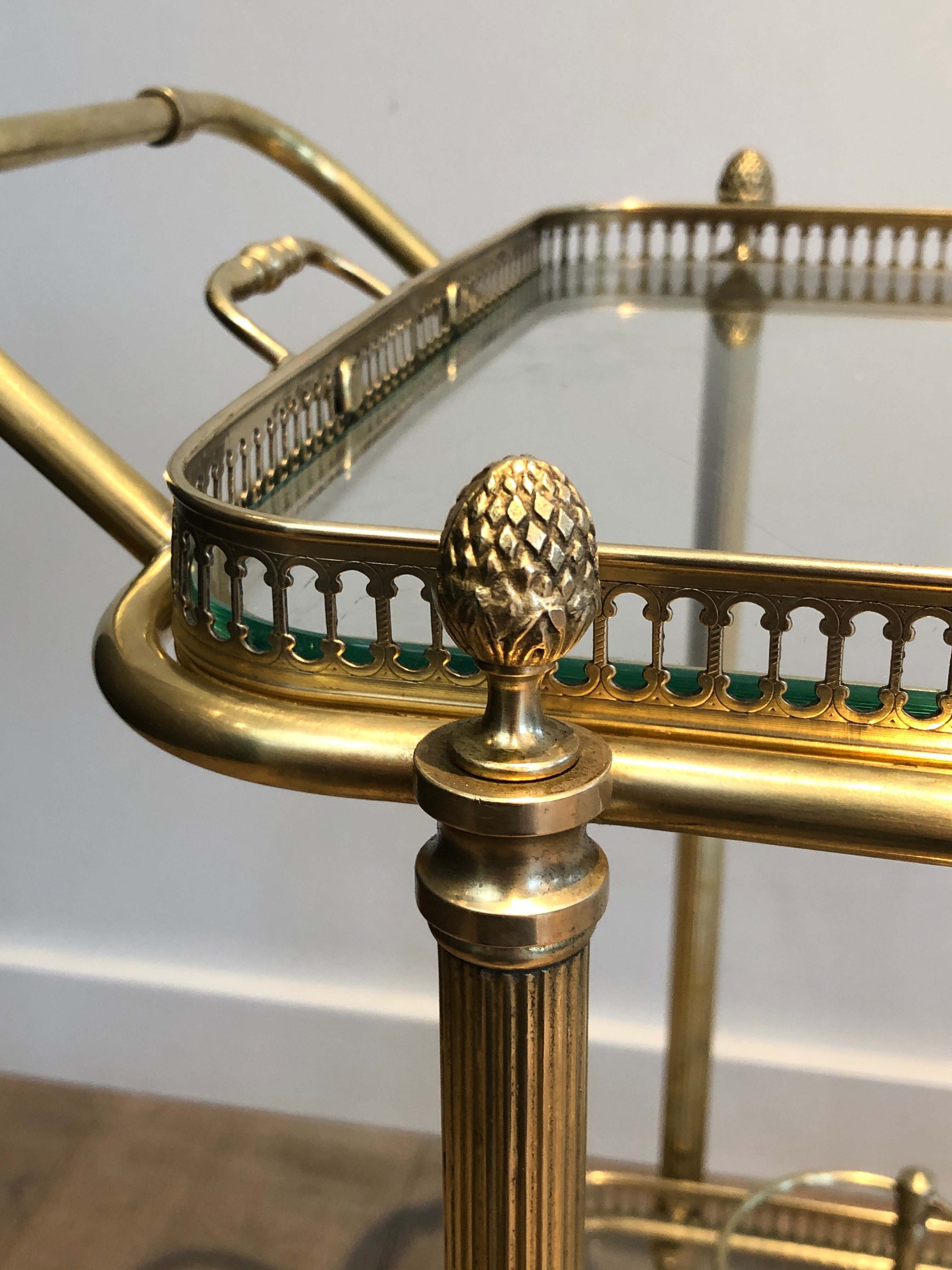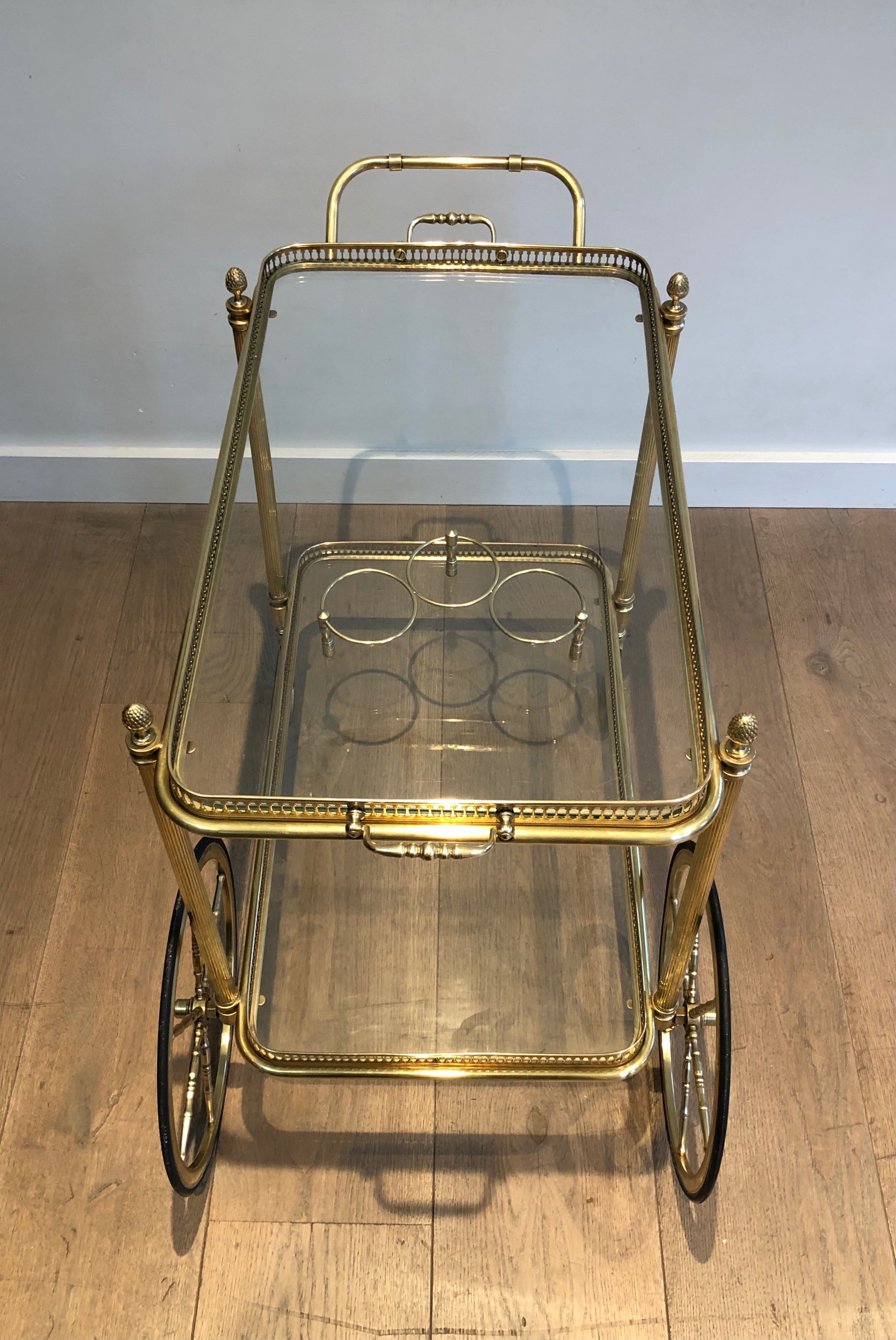 The drinks trolley with removable trays is one of the most practical and charming objects in the French service tradition, allowing the gracious presentation of drinks to be performed with effortless elegance. This Baguès example elevates the form to a work of decorative art, its architectural brass structure and the ingenuity of its detachable trays making it a conversation piece as much as a service object. Whether used in a drawing room, dining room, or library, it combines convivial function with the unmistakable authority of one of the great names in 20th-century French decorative metalwork.