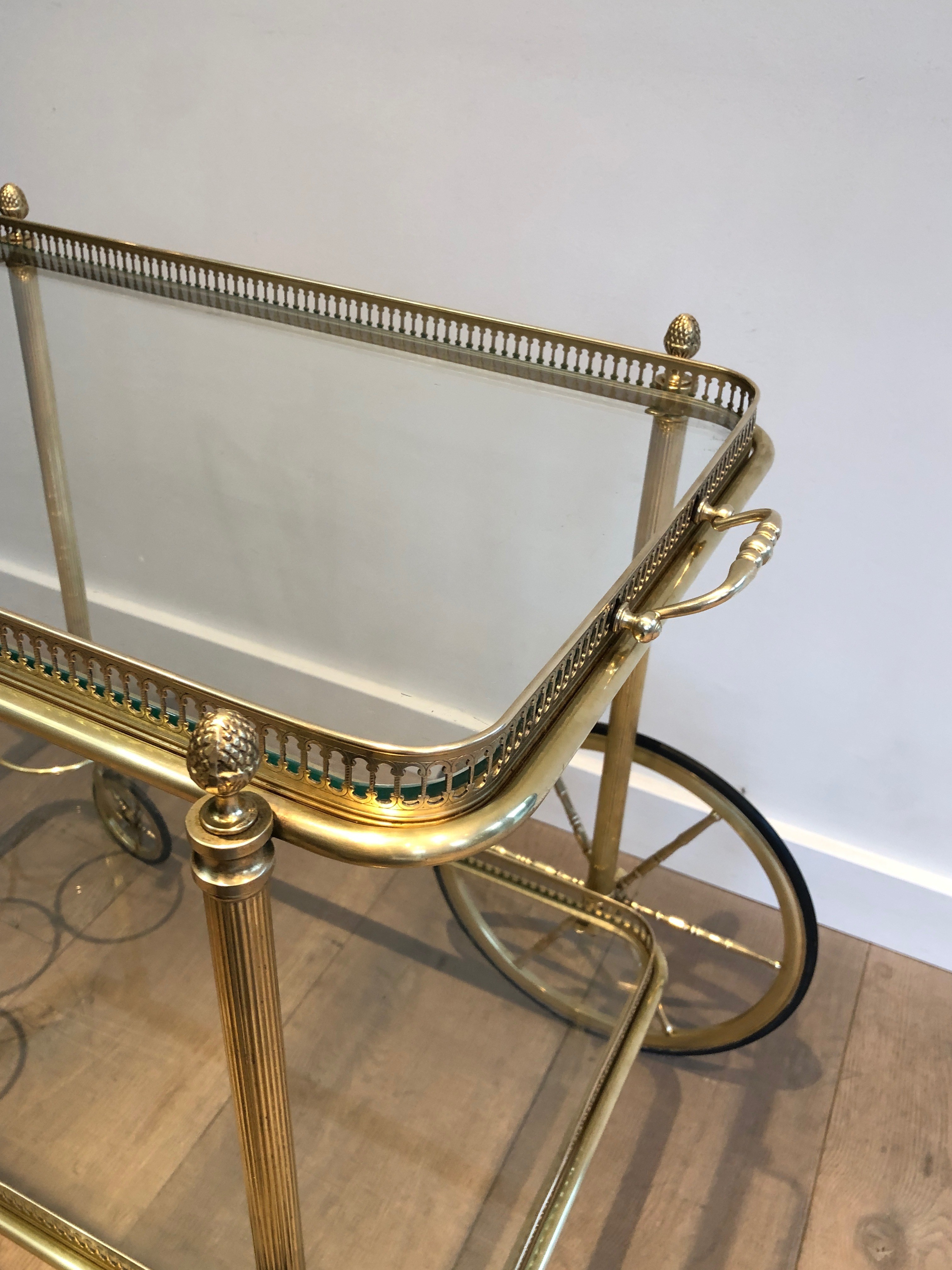 This trolley is a production of Maison Baguès, the celebrated Parisian bronze foundry and decorative arts house established in the mid-19th century on the Boulevard du Temple. Baguès became one of the most prestigious names in French decorative metalwork, renowned for their mastery of brass, bronze, and gilt metal and for the exceptional quality of their lighting and furniture. Their pieces were coveted by the most eminent decorators of the Art Deco and mid-century periods — including Henri Samuel, Emilio Terry, and Maison Jansen — and adorned the finest private interiors and luxury establishments of Paris and beyond. A drinks trolley from the Baguès workshops represents the intersection of luxury craftsmanship and functional elegance that defined the best French decorative production of the era.
