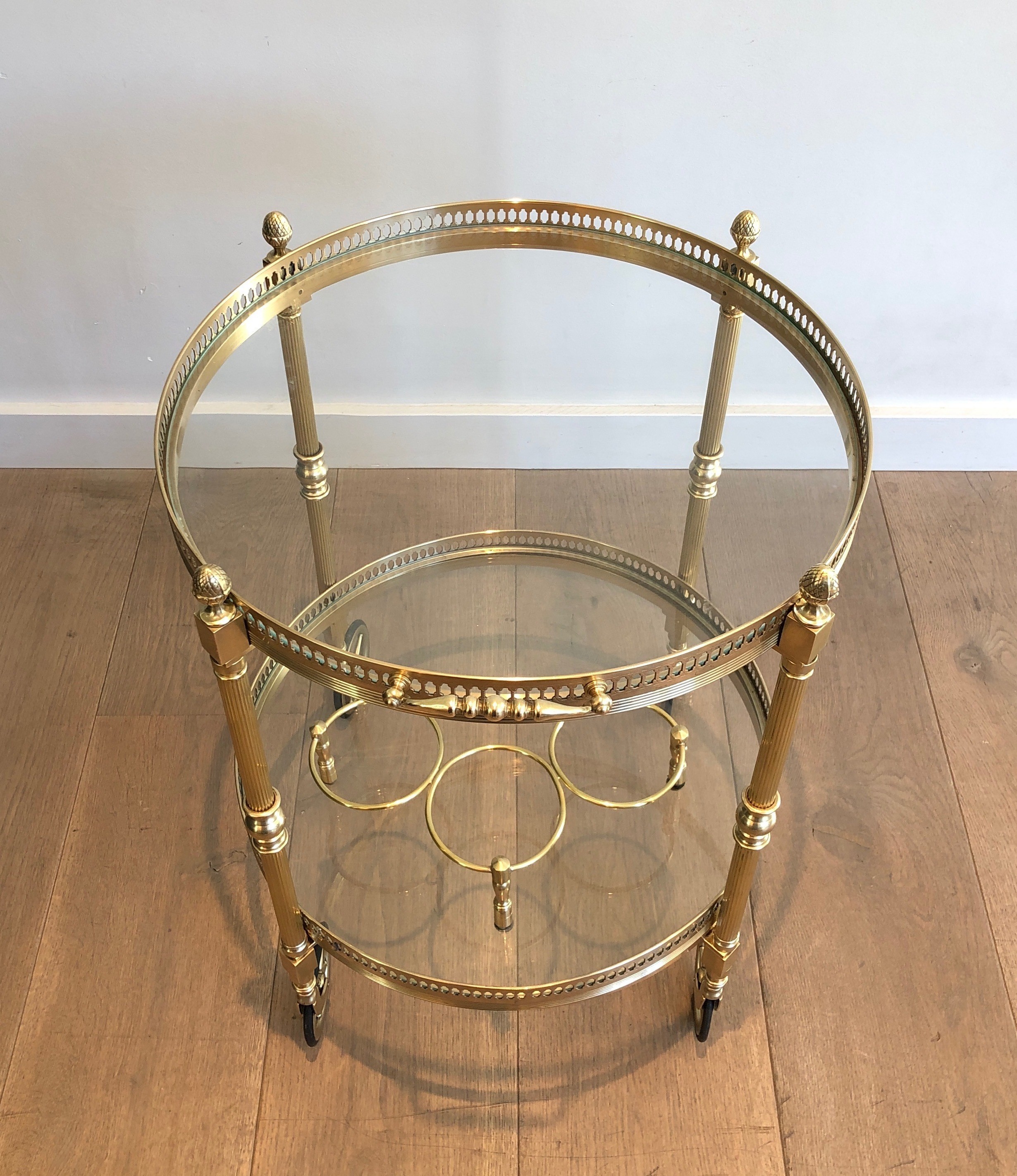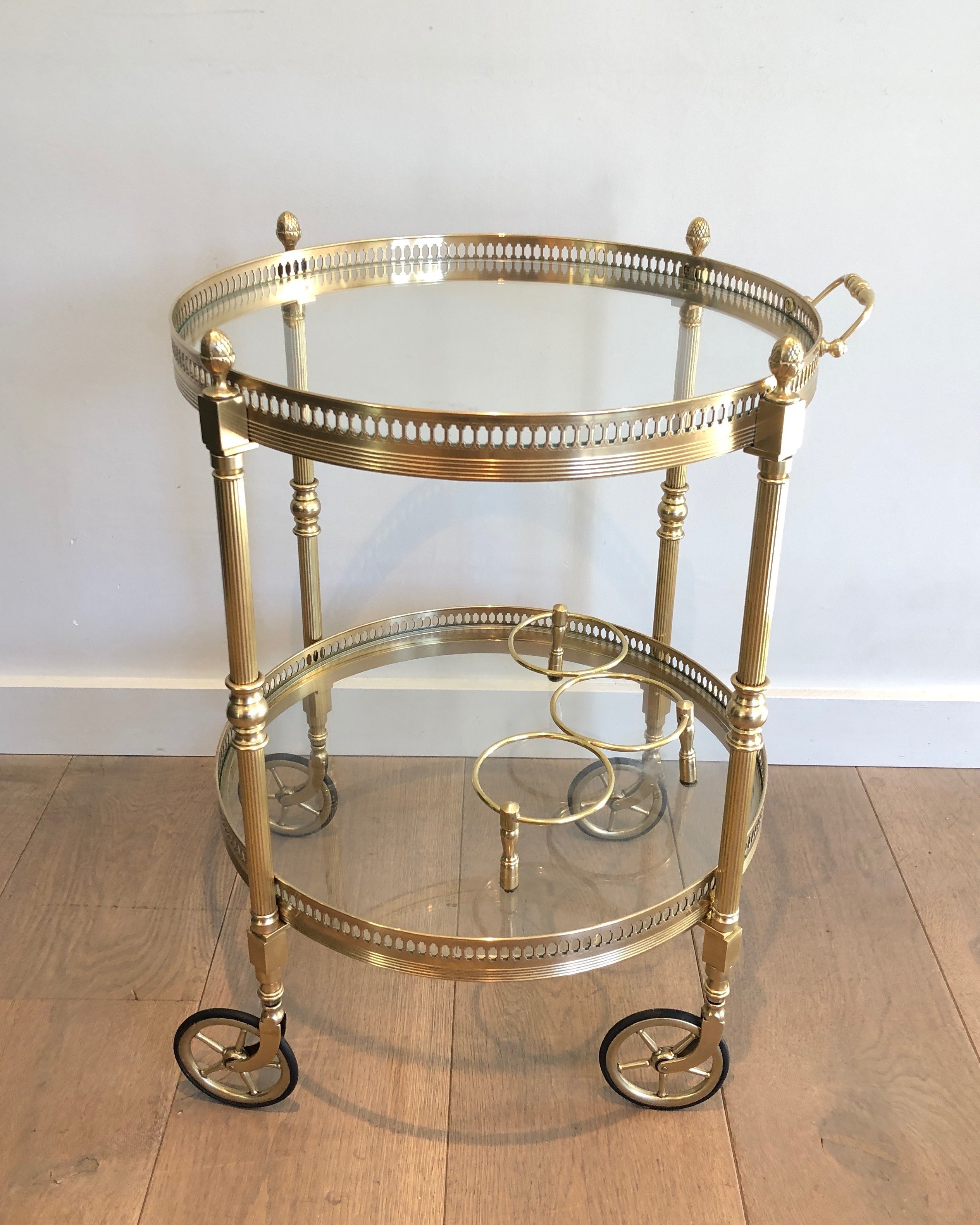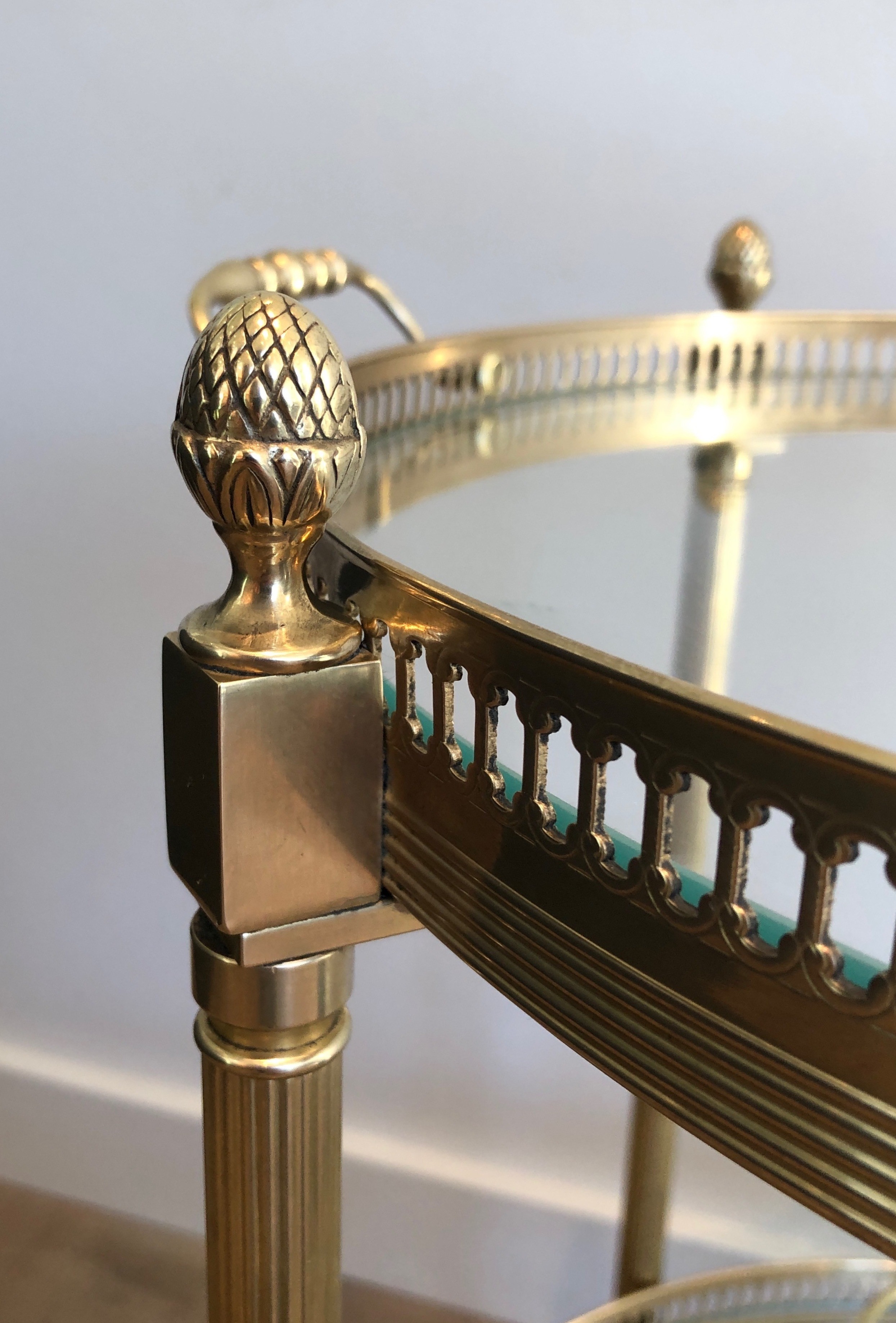 This elegant circular rolling brass table with removable trays is an emblematic piece from Maison Baguès' production in the 1940s, combining neoclassical refinement with practical utility. The finely worked brass structure deploys the house's characteristic motifs — turned profiles, generous curves, precise assembly — while the removable trays offer a versatility of use particularly prized in the most elegant drawing rooms. The warm, aged golden patina speaks of careful maintenance across the decades.