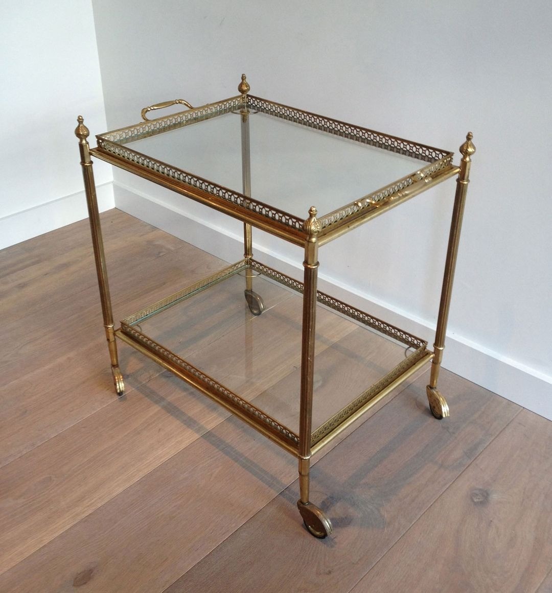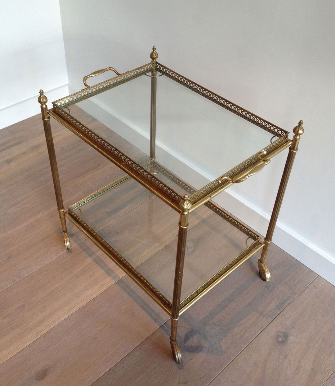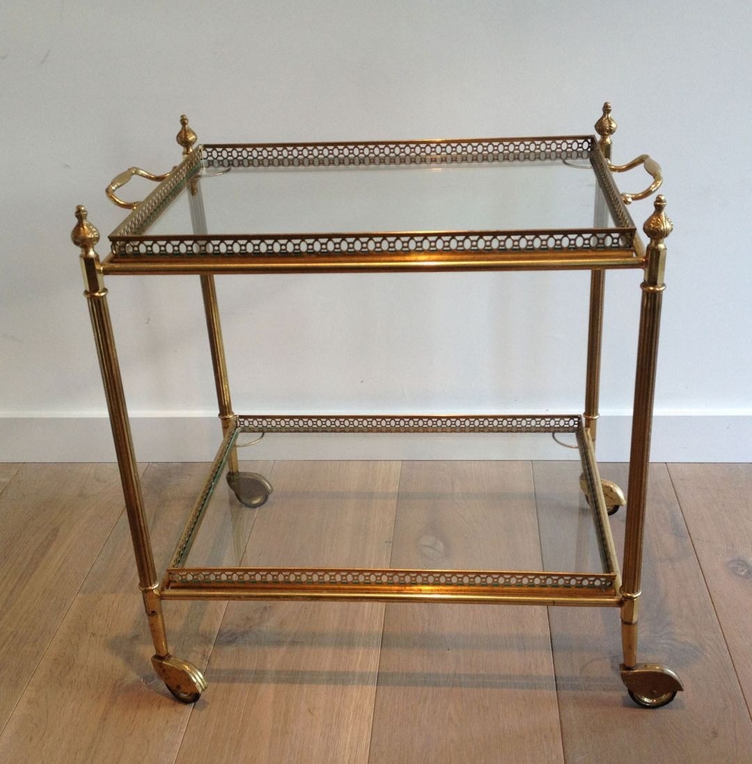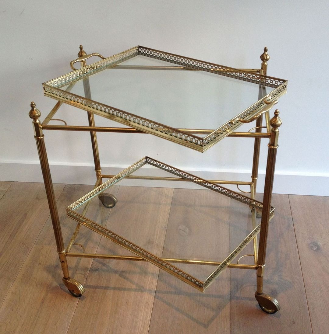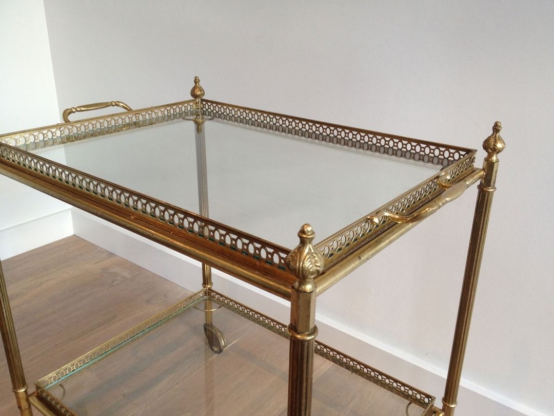 Neoclassical style brass drinks trolley with removable Trays. French work in the style of Maison Jansen. Circa 1940