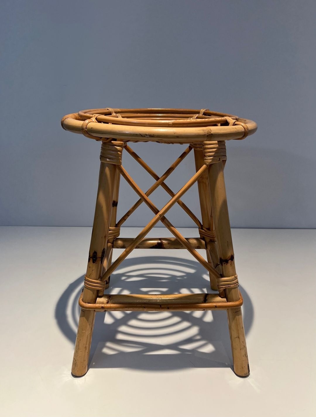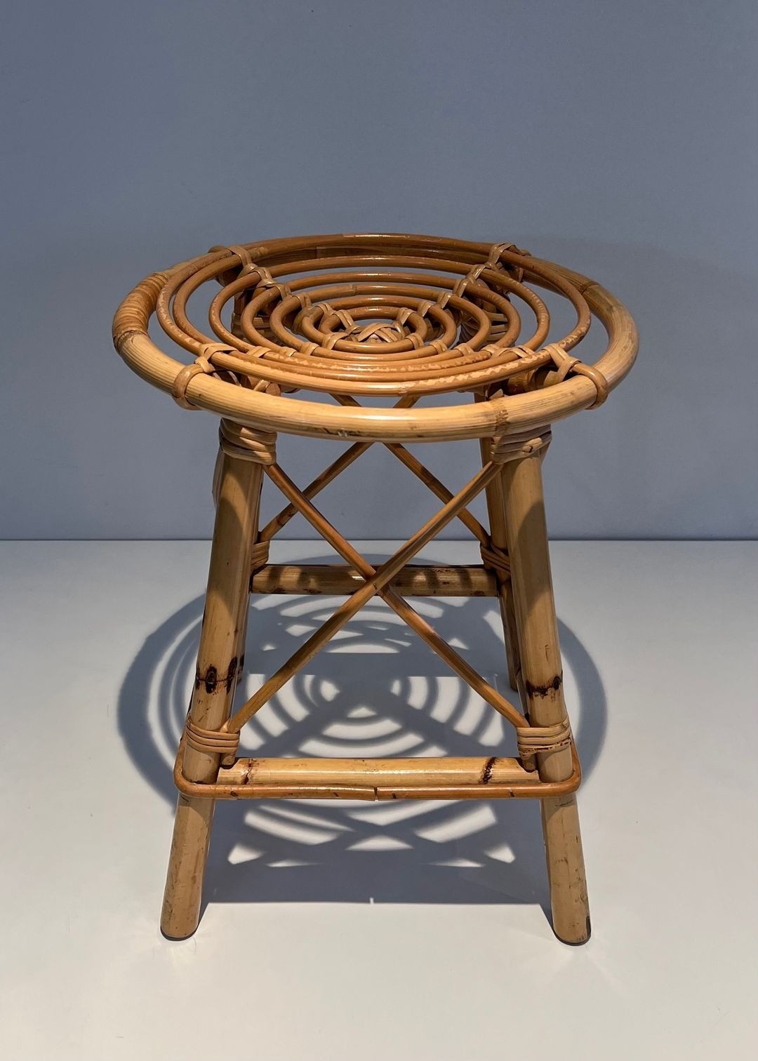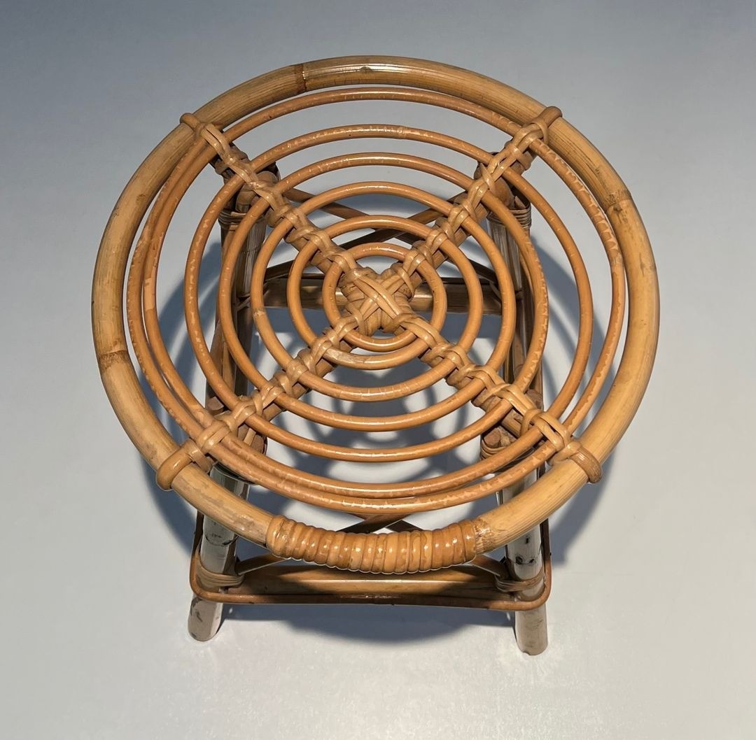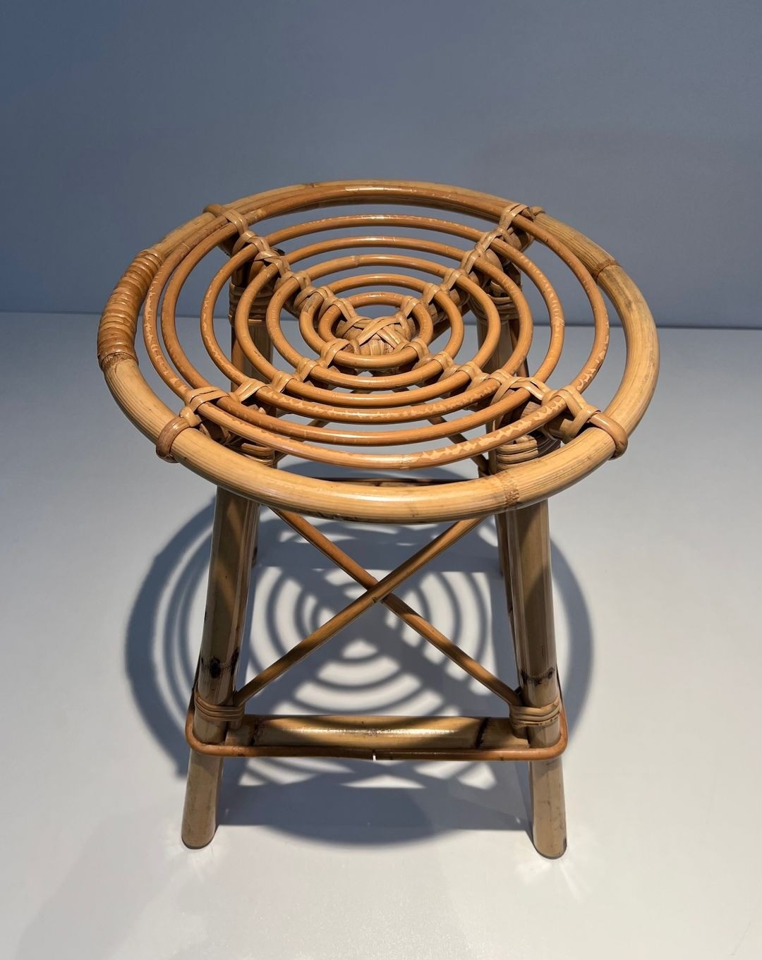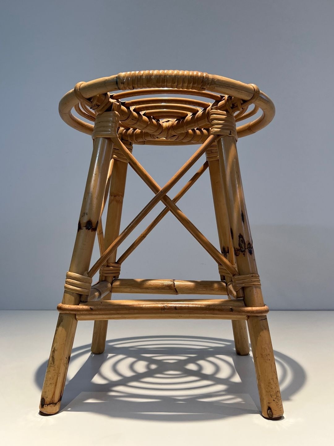 Royère left Paris for Cairo in 1964, continuing to work from Egypt until his death in 1981. His oeuvre, long underestimated in France, has been rediscovered since the 1990s and now commands exceptional prices at auction, with major pieces achieving record sums at Christie’s and Sotheby’s. A stool in his style participates in that rediscovery — carrying the material warmth and formal intelligence that characterized his approach to furnishing the most elevated domestic interiors of the mid-twentieth century.