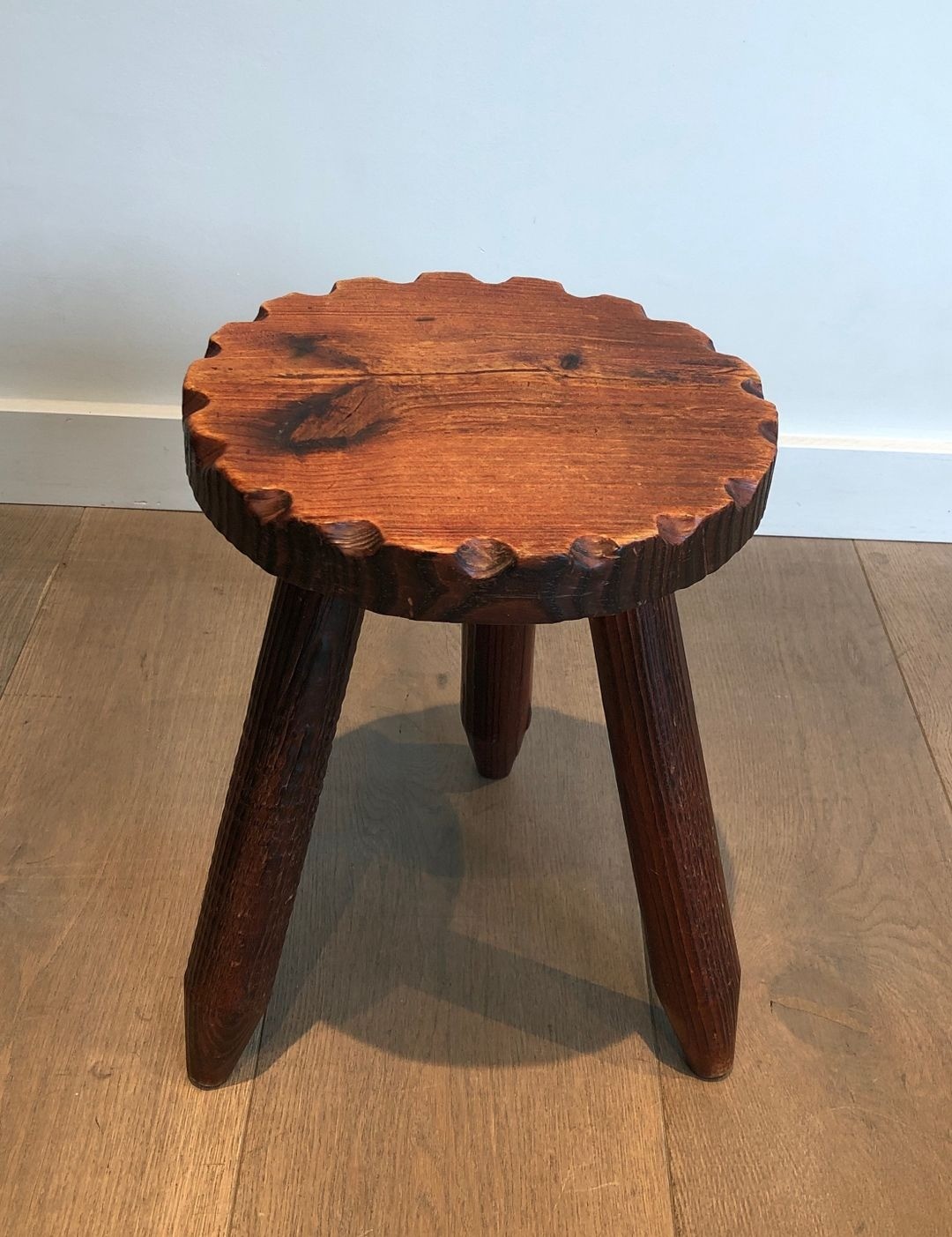 The proportions are those of the low working stool: 42 cm wide, 40 cm deep, 37.5 cm high — a height that places the seated occupant closer to the floor than the conventional stool, suited to workbench tasks, hearth-side seating, or the informal domestic situations of the mid-century French home. As a pair, the two stools mirror each other without being identical: different knots, different grain patterns, the paired asymmetry that only natural material can produce. They age with the dignity of pine, darkening gradually and acquiring the patina of decades of domestic use.