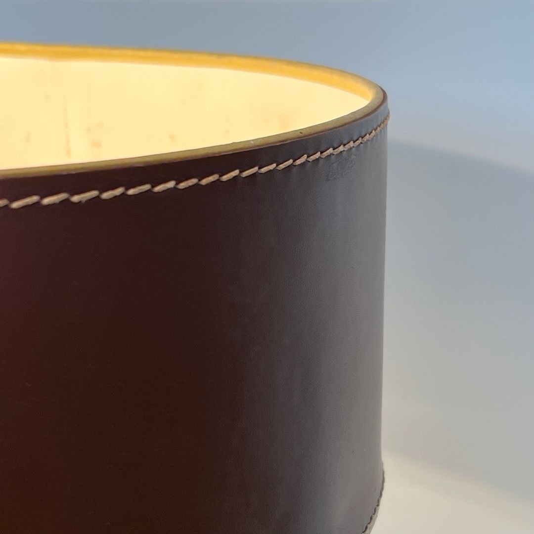 Brown leather and brass desk lamp. French work in the style of Jacques Adnet. Circa 1970