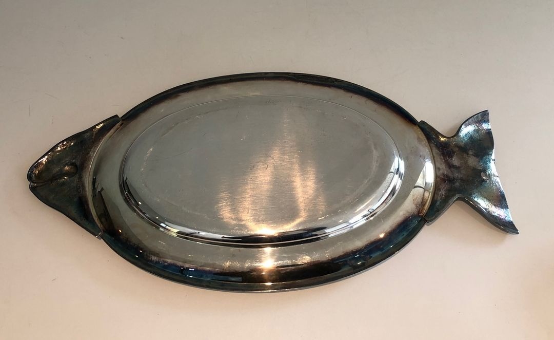 Silver-Plated Fish Serving Dish, Signed Teghini Firenze, circa 1970