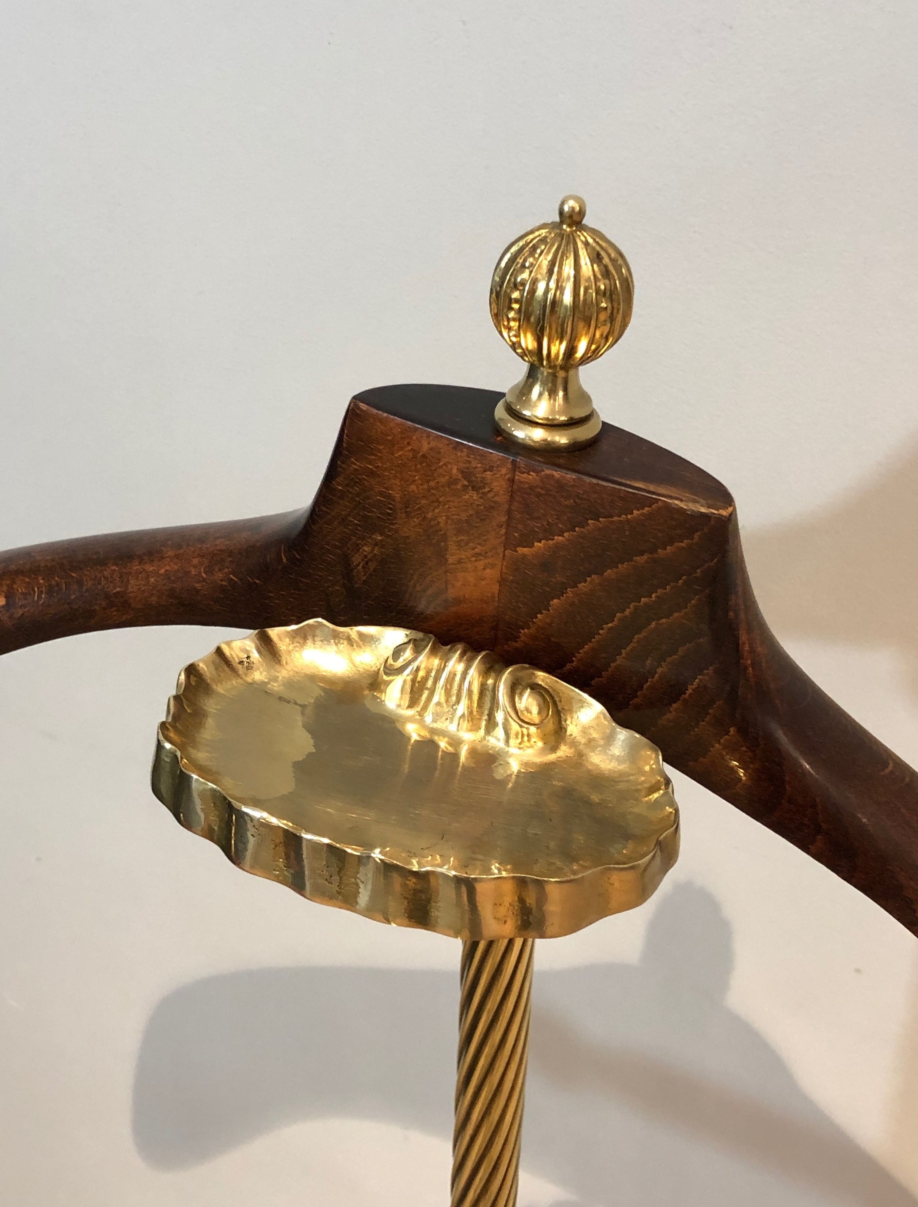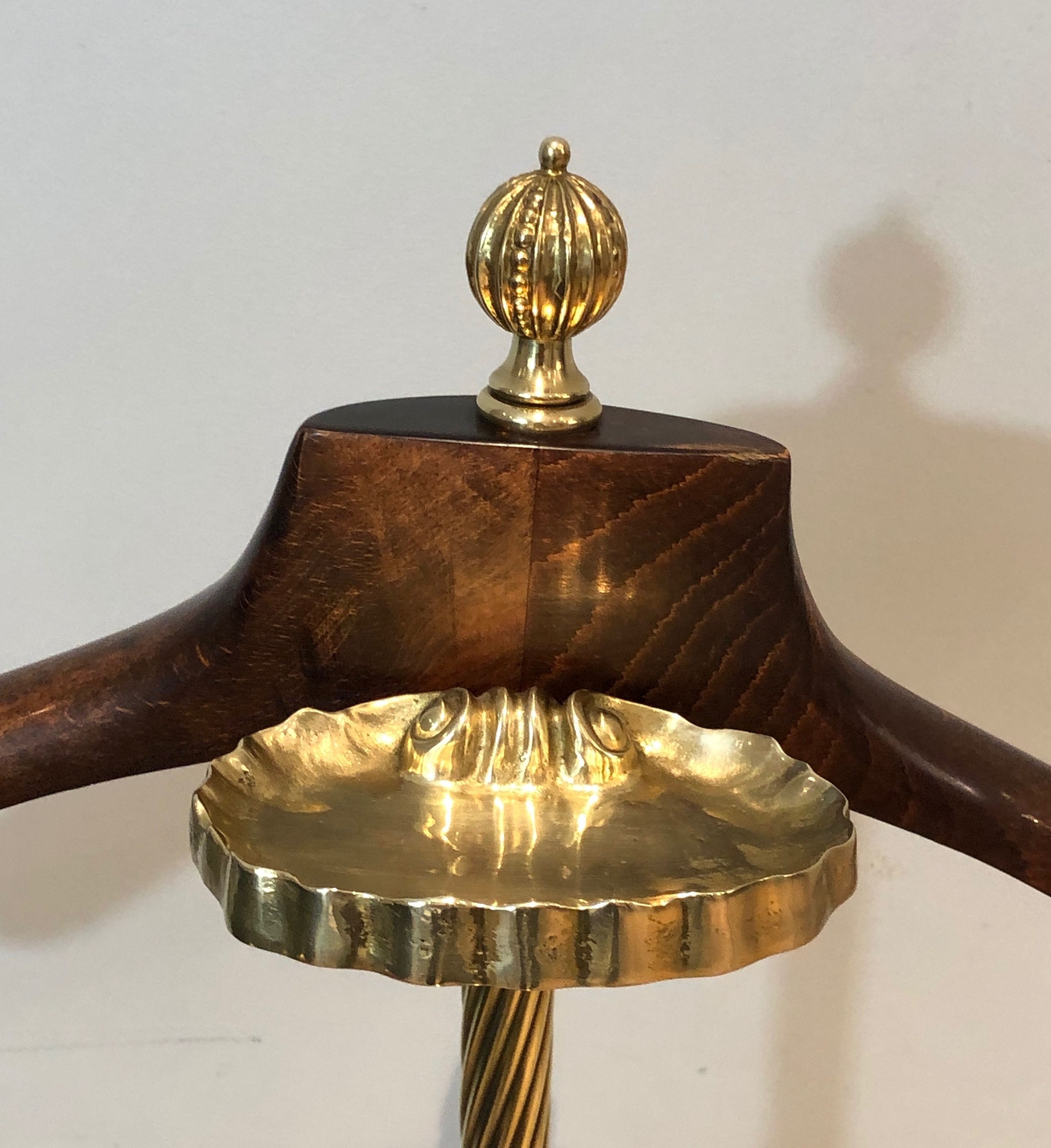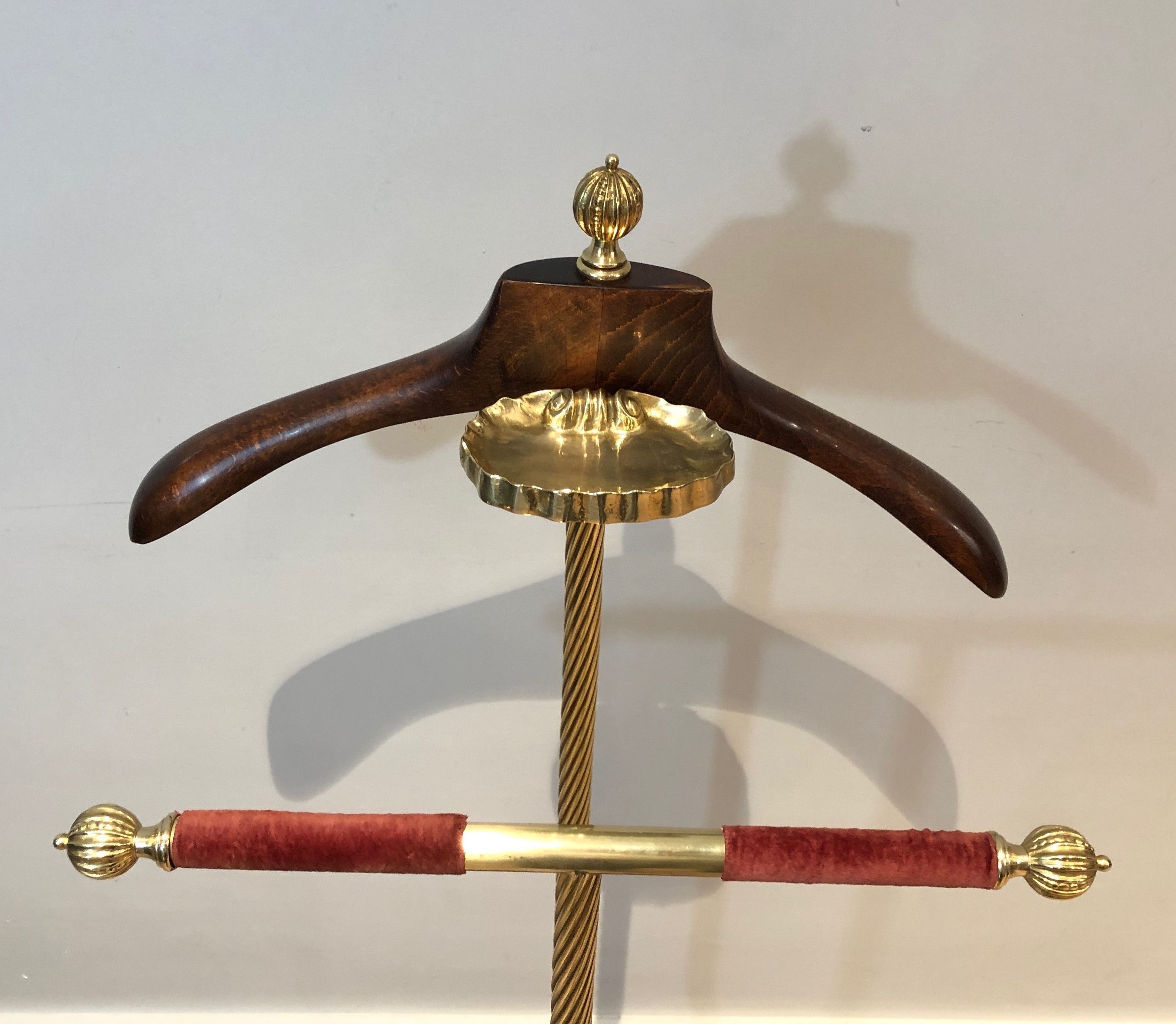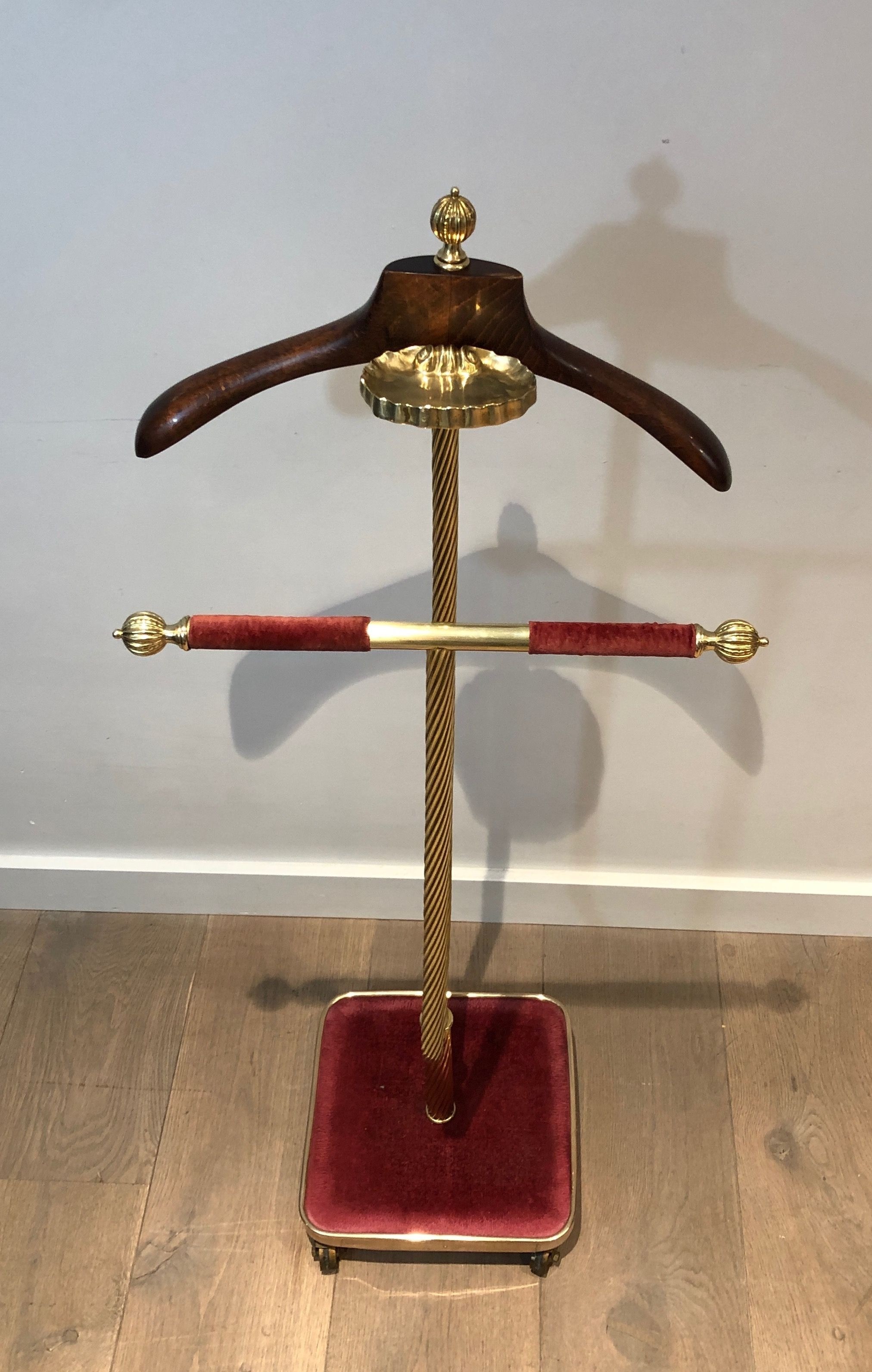 This valet stand is attributed to Maison Jansen, the legendary Parisian decorating house founded in 1880 on the Rue Royale, whose interiors under Stéphane Boudin (1888–1967) set the international standard for luxury domestic decoration in the mid-twentieth century. Small functional objects such as this valet stand were produced by Jansen for the dressing rooms of its grandest private commissions — the bedroom suites of royal palaces, the dressings of the most distinguished Parisian hôtels particuliers. In Boudin's vision, every object in a well-appointed interior, however seemingly minor, was an opportunity to express the house's exacting standards of material quality and formal refinement. A valet stand in brass and crimson velvet bearing the Jansen imprimatur represents that philosophy at its most intimate and complete.
