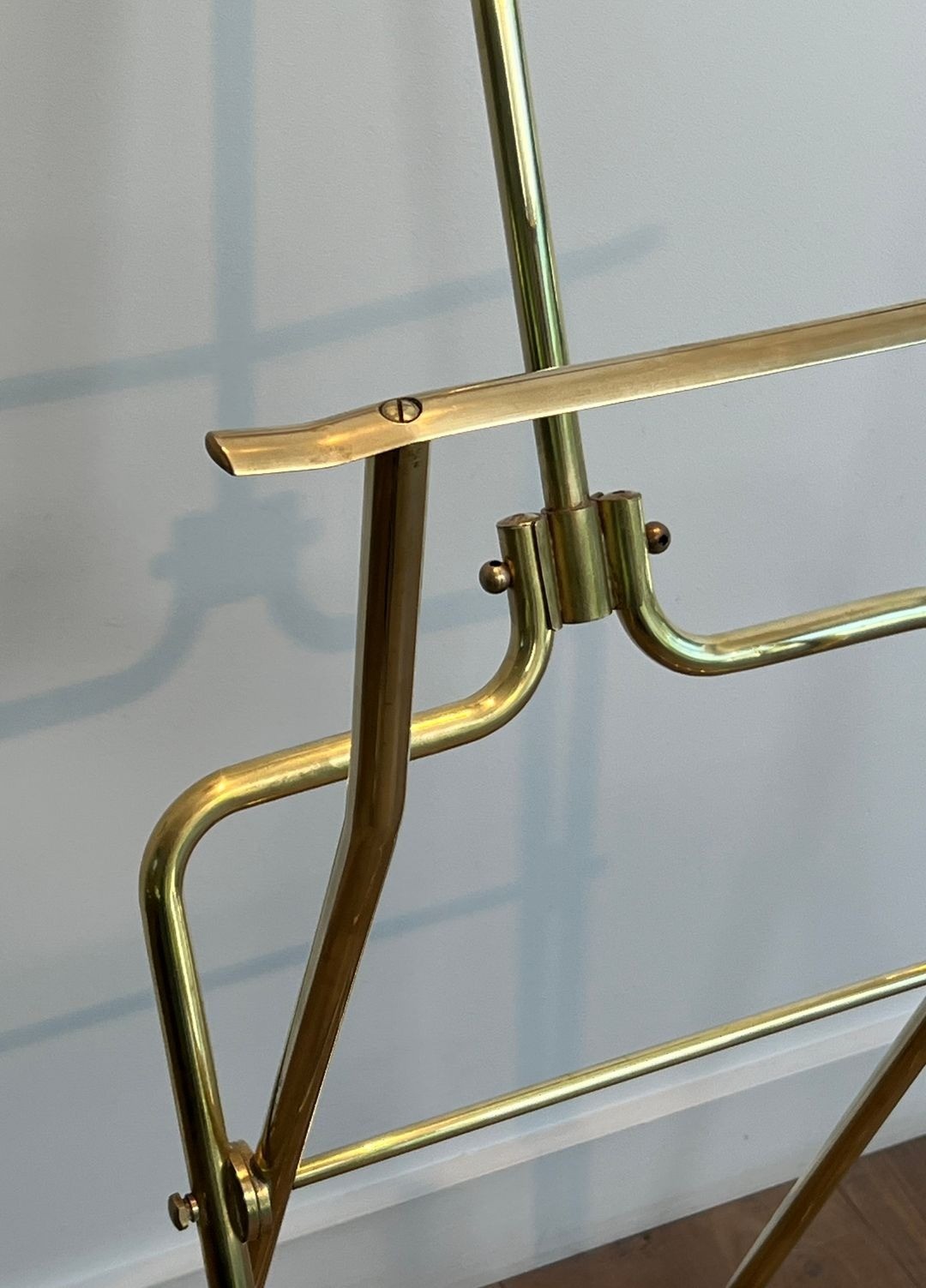 Folding Valet Stand on Casters, Neoclassical, Brass and Wood, French, circa 1940