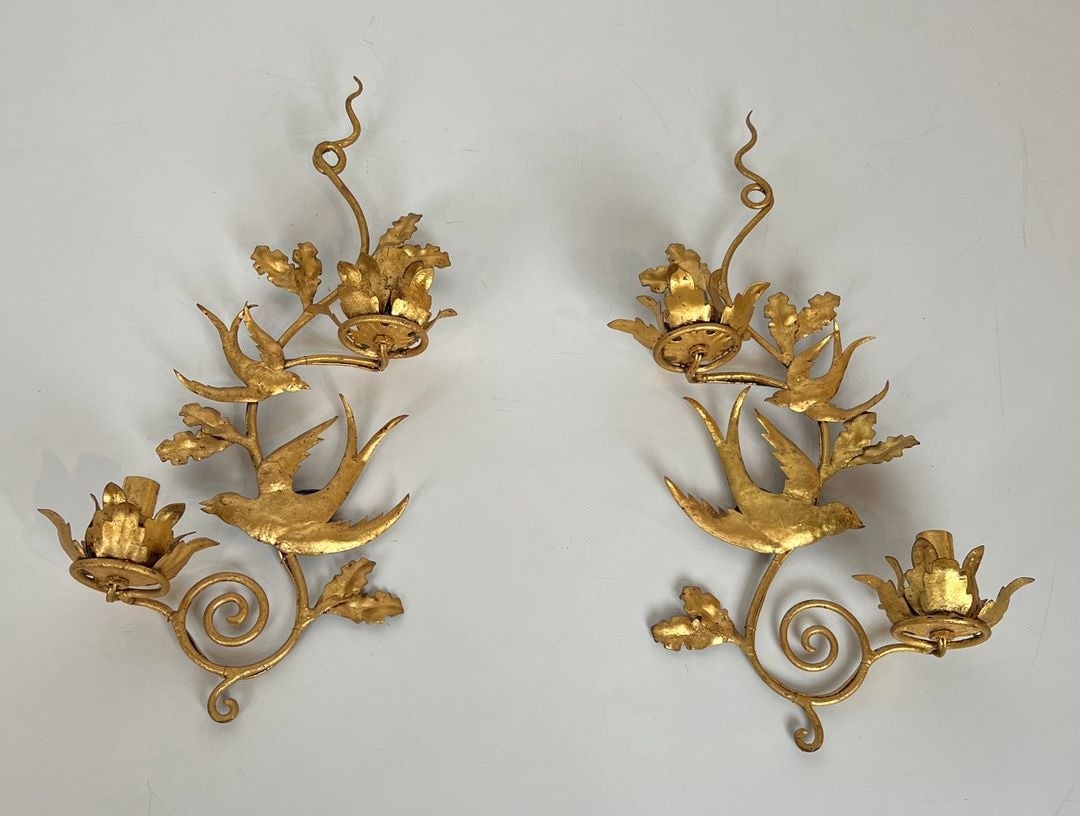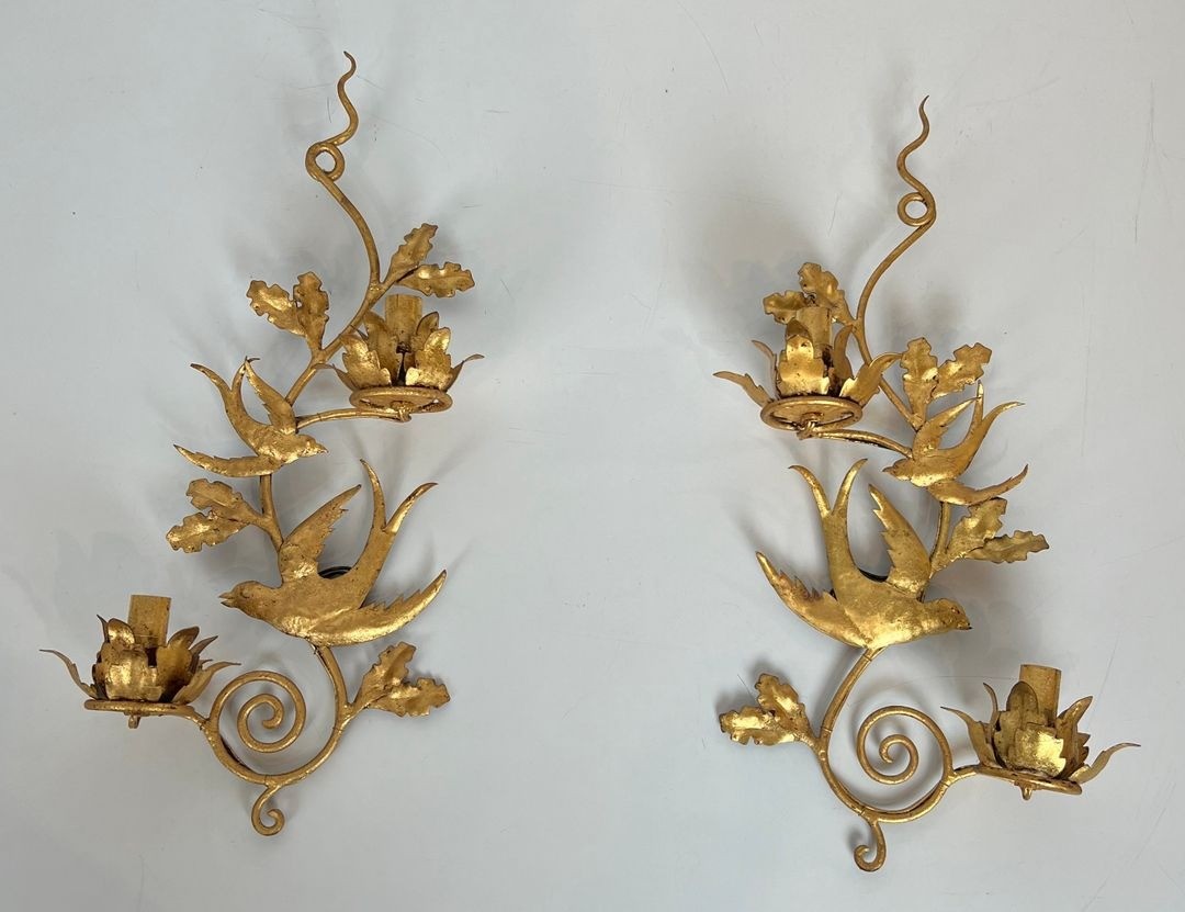 This pair is in fine condition, their gilded finish warm and well preserved. The bird motif and generous height make them versatile showpieces for an entrance hall, drawing room, or dining room. As elegant examples of the Baguès-influenced tradition of naturalistic gilt lighting, they offer an accessible introduction to one of the most distinctive and enduringly fashionable genres of French decorative arts.