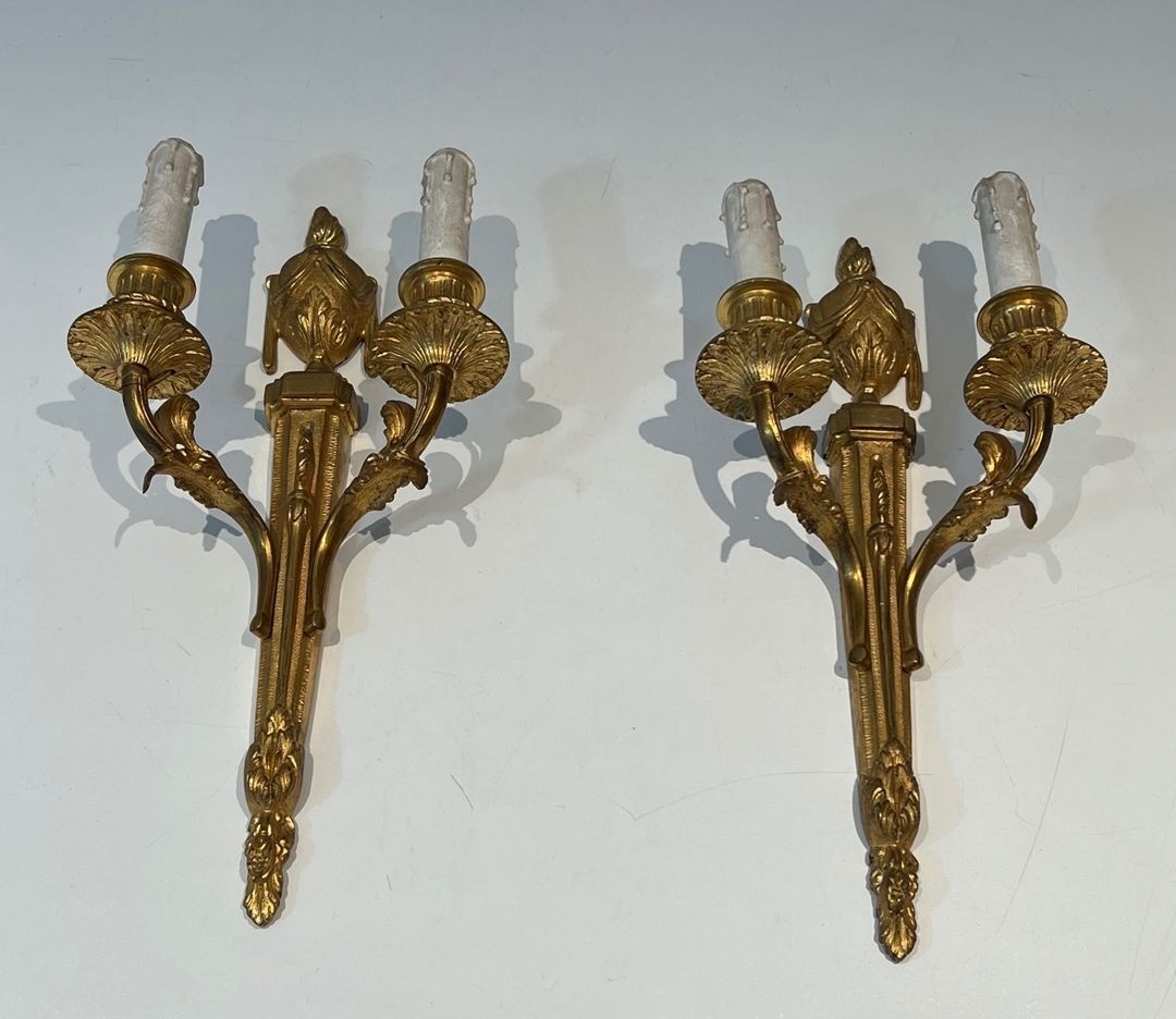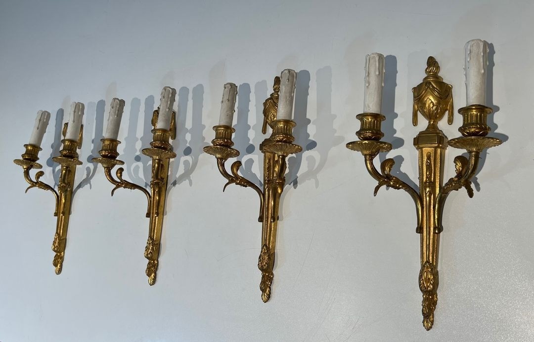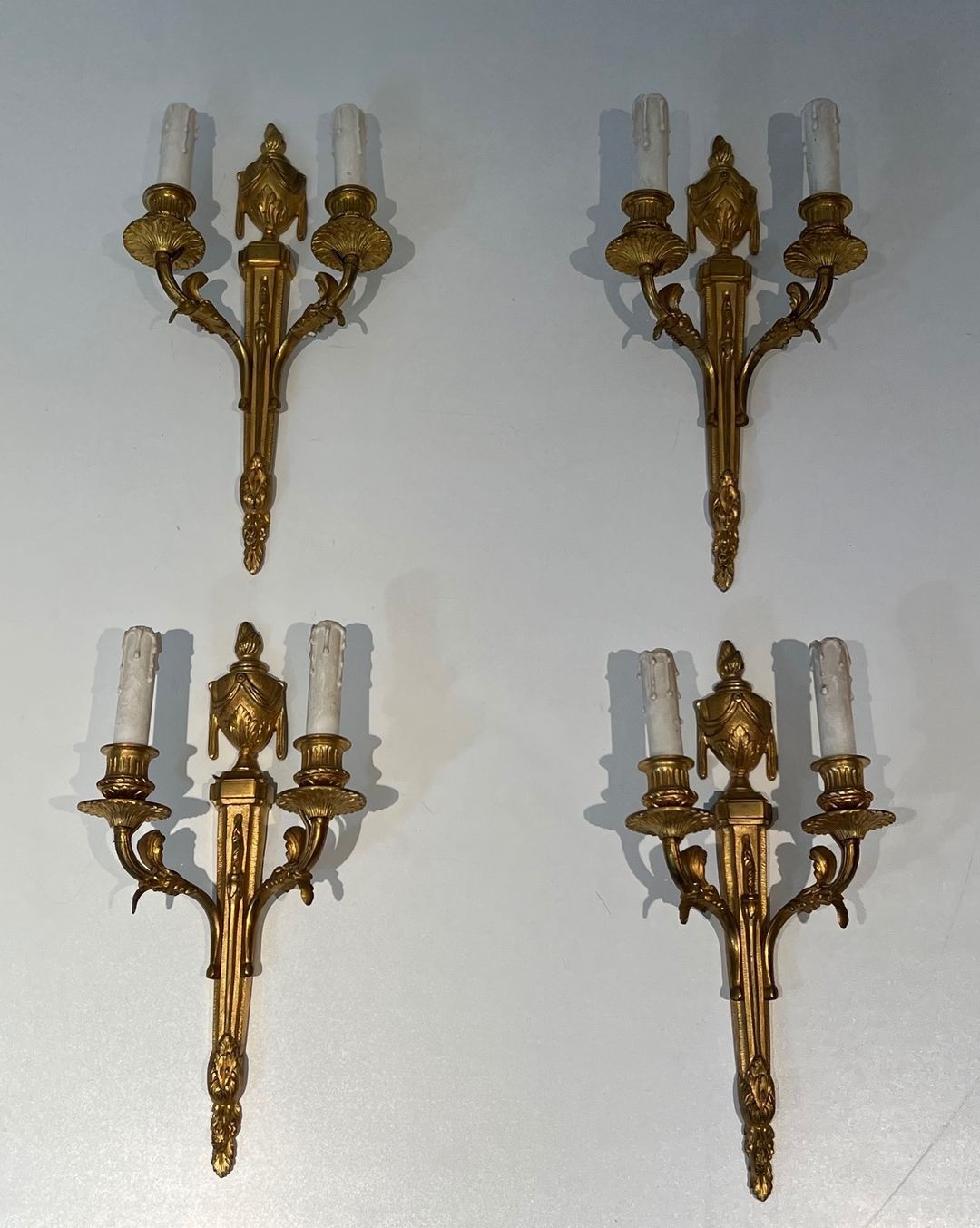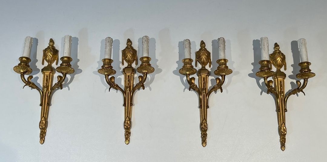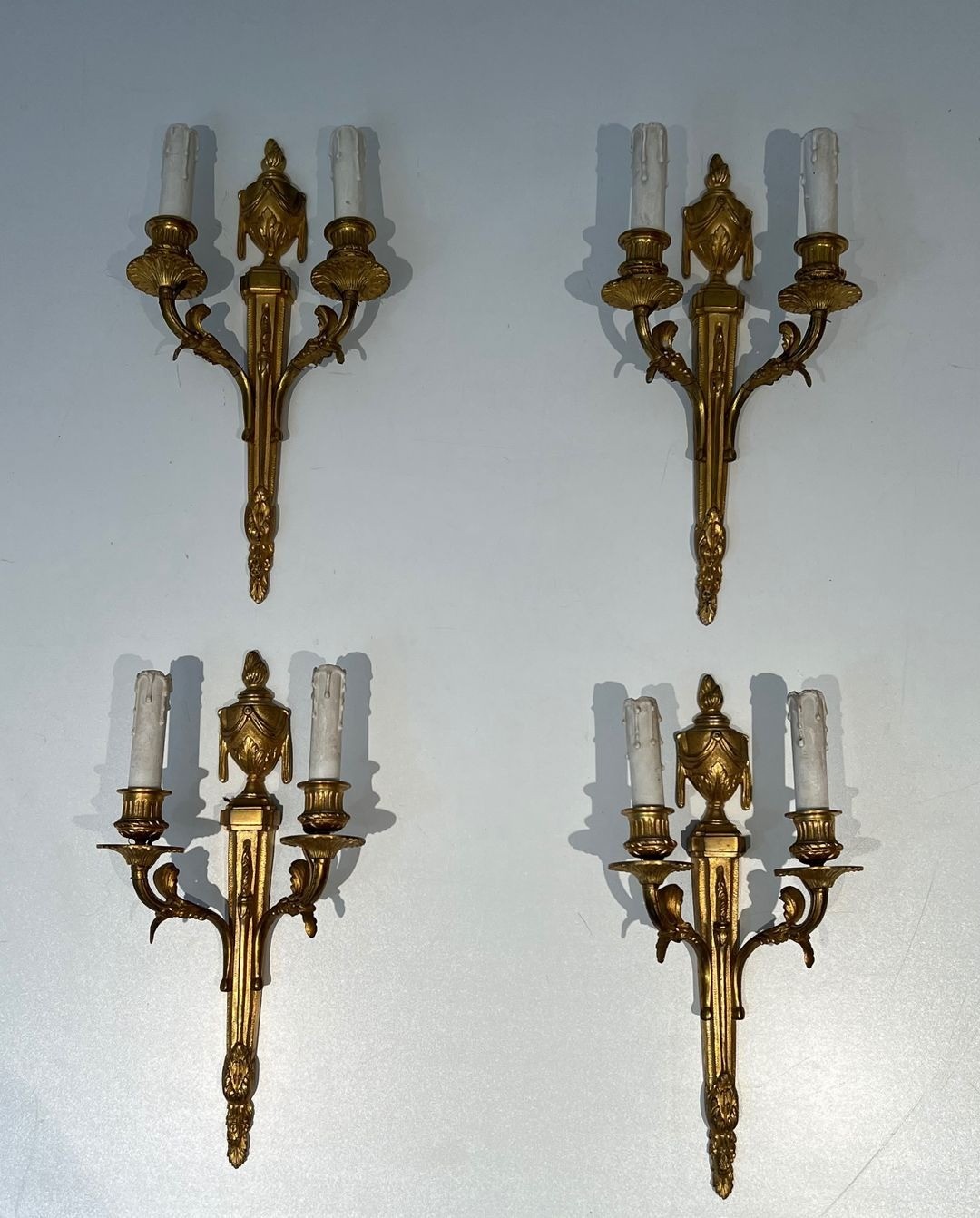 Set of four bronze wall sconces. French Work in the style of Louis the 16th. Circa 1940