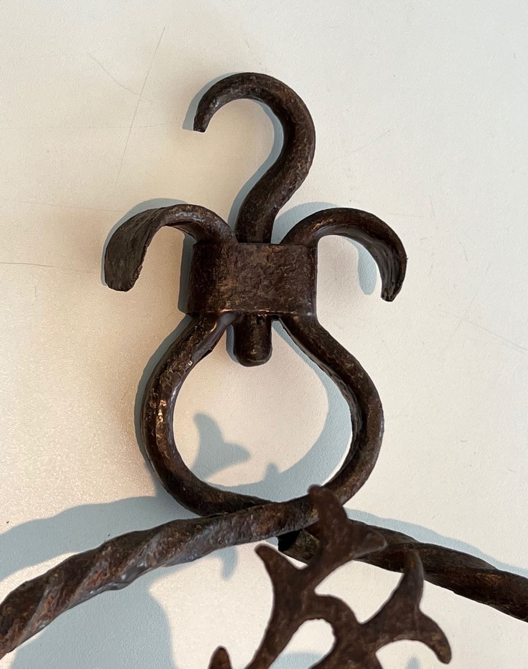Pair of wrought iron wall lights showing animals. French work. Circa 1950