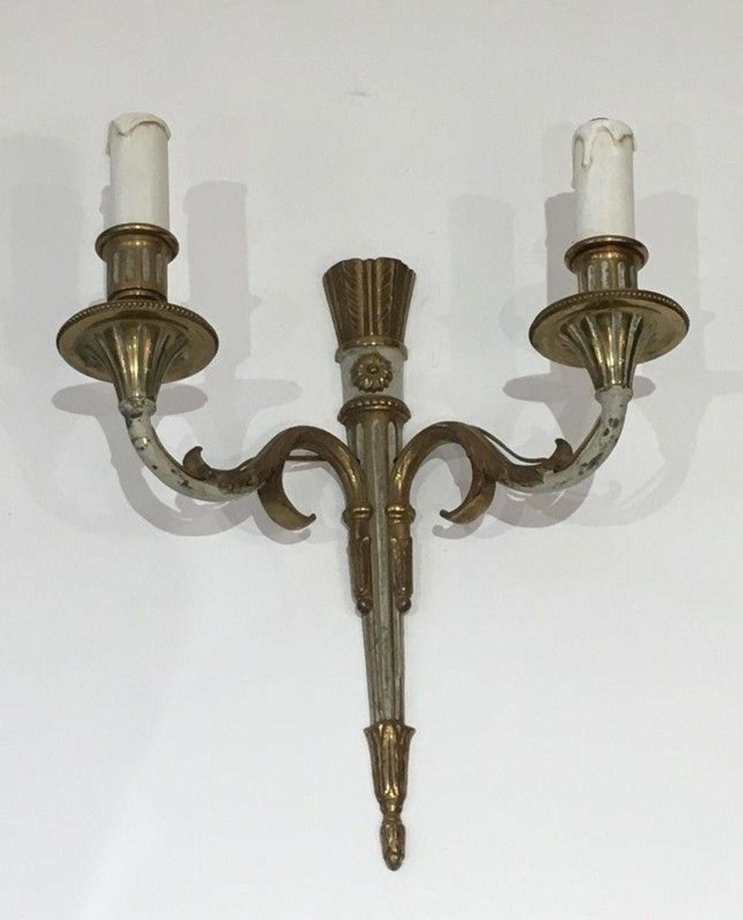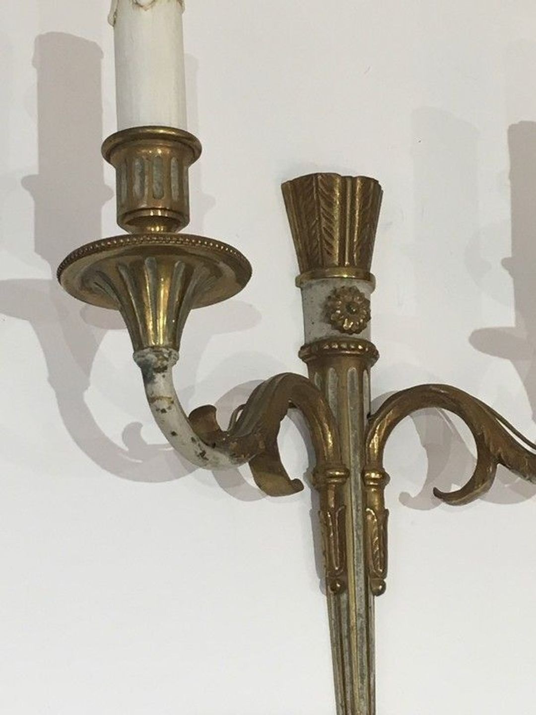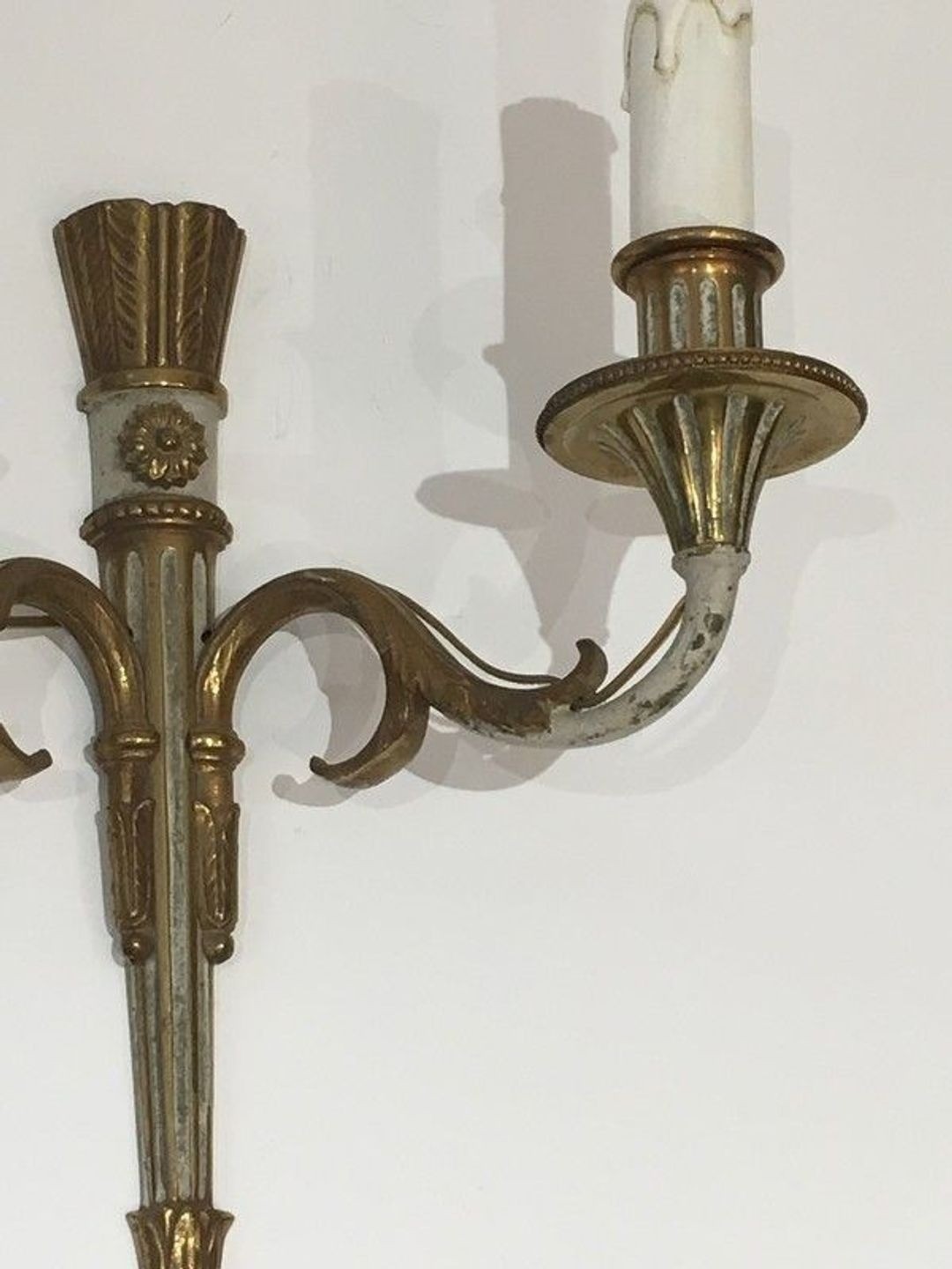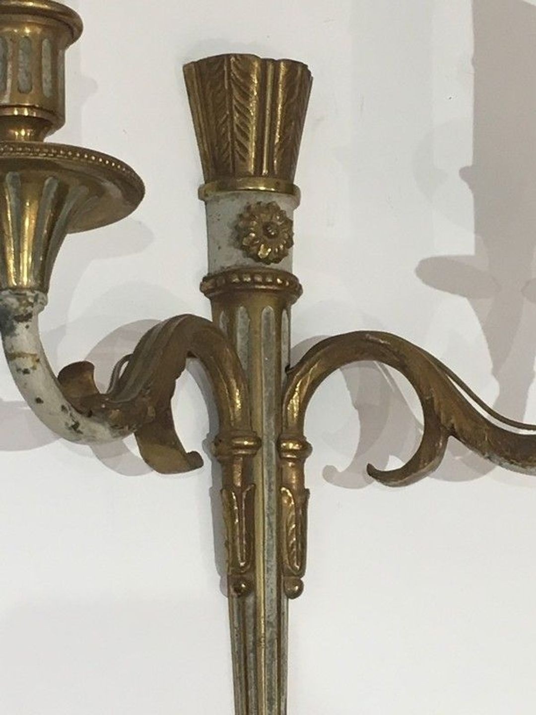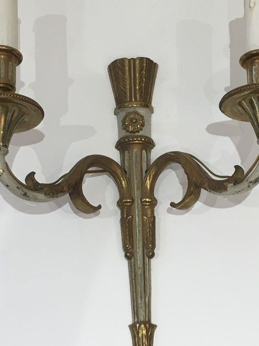 Pair of Louis the 16th Bronze and White Painted Wall Sconces. French. Circa 1940
