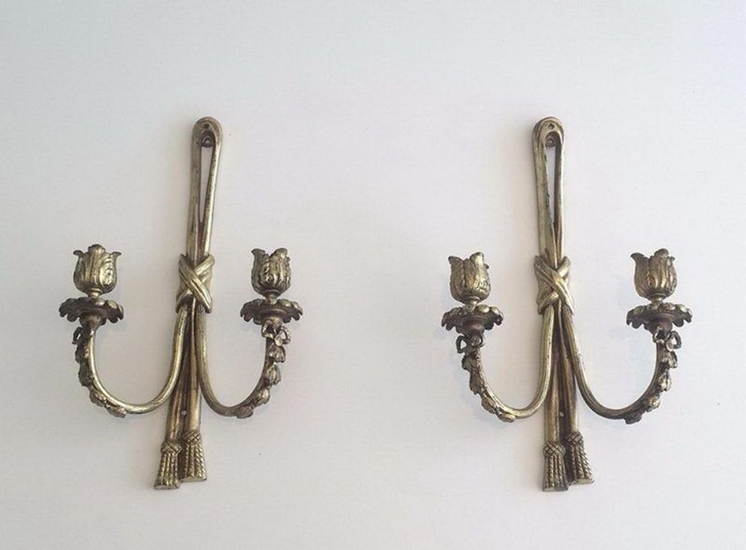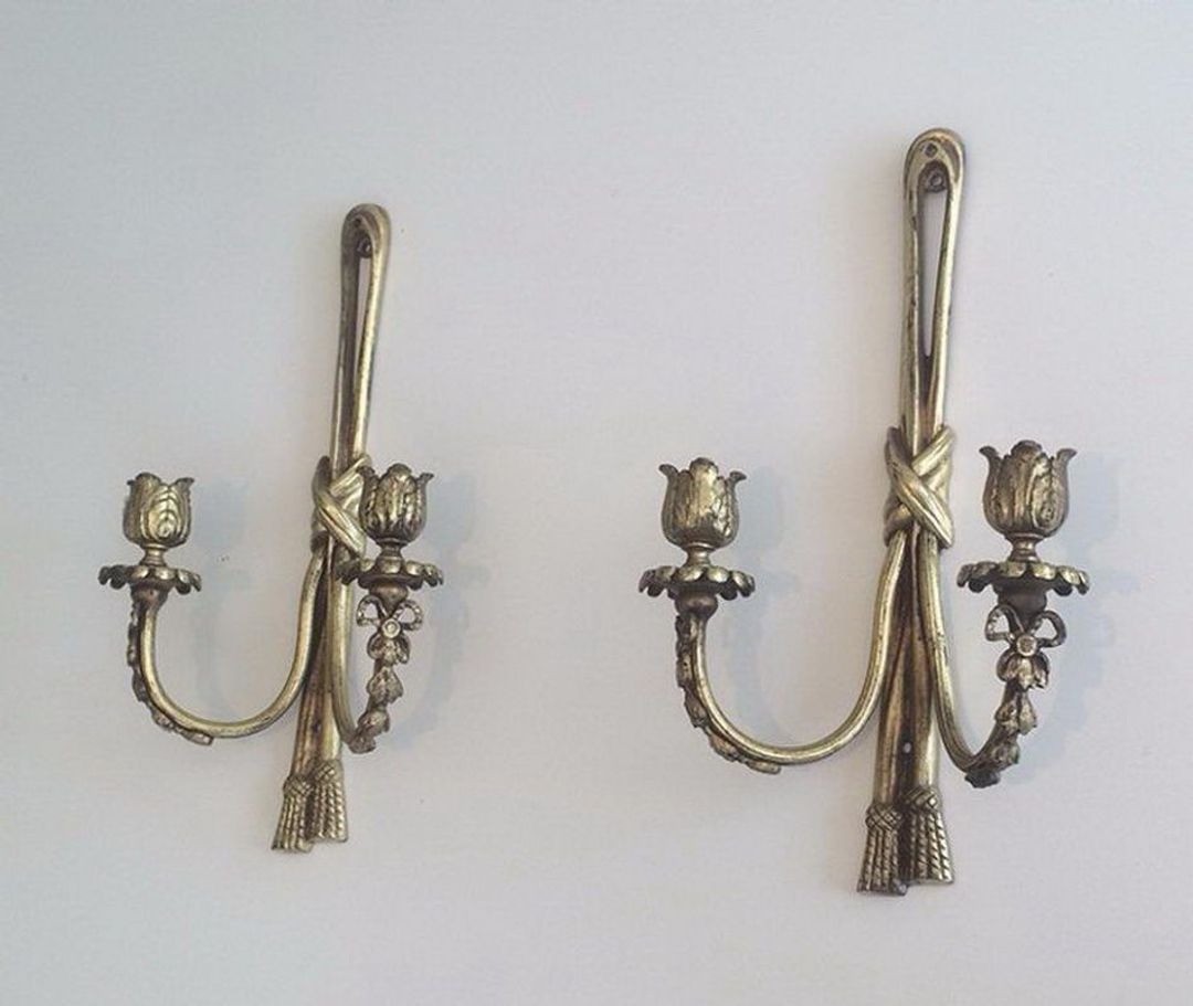 Pair of Louis the 16th style bronze wall sconces. Circa 1950
