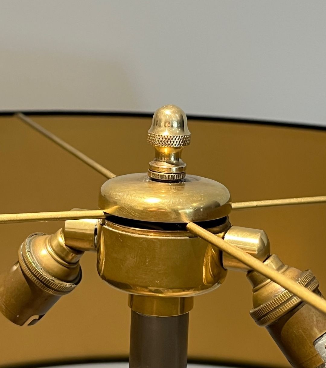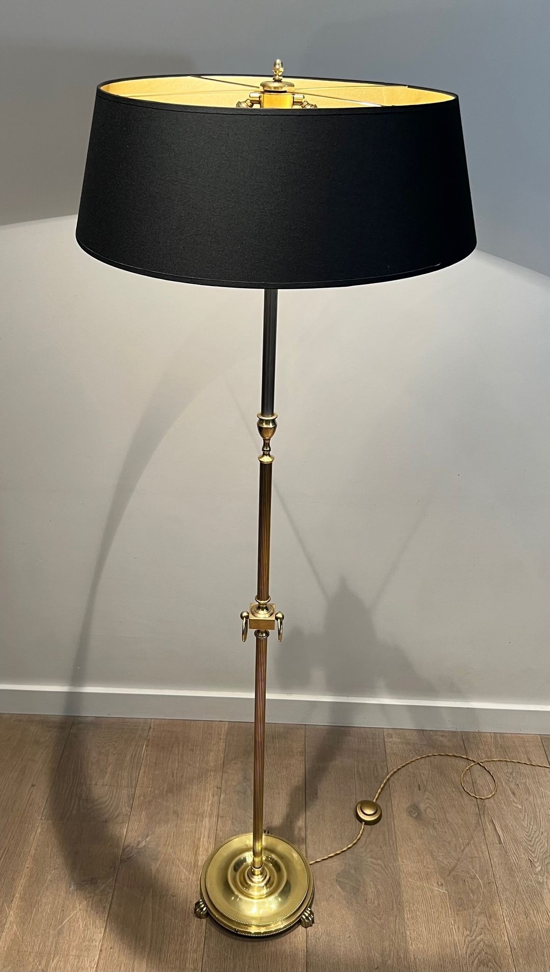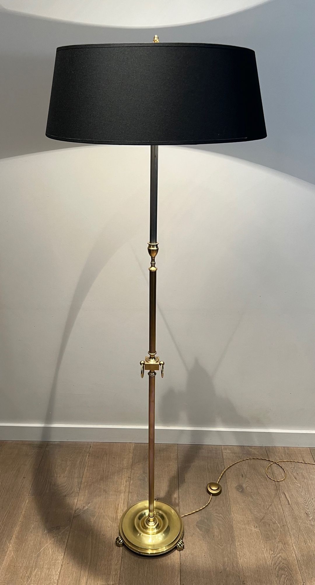Lampadaire de parquet de style néoclassique en laiton. Travail Français dans le goût de la Maison Jansen. Base du piètement légèrement enfoncée. Vers 1940