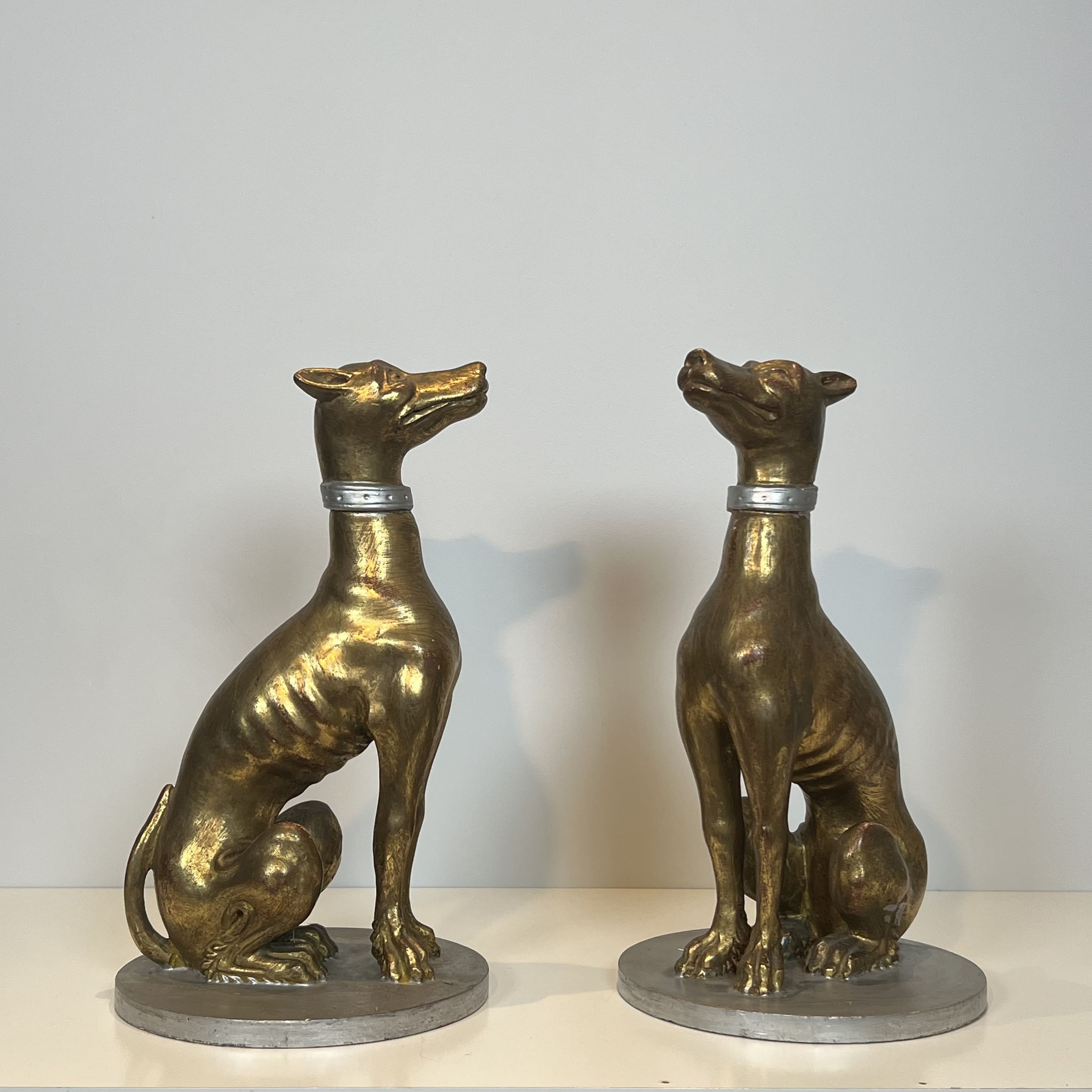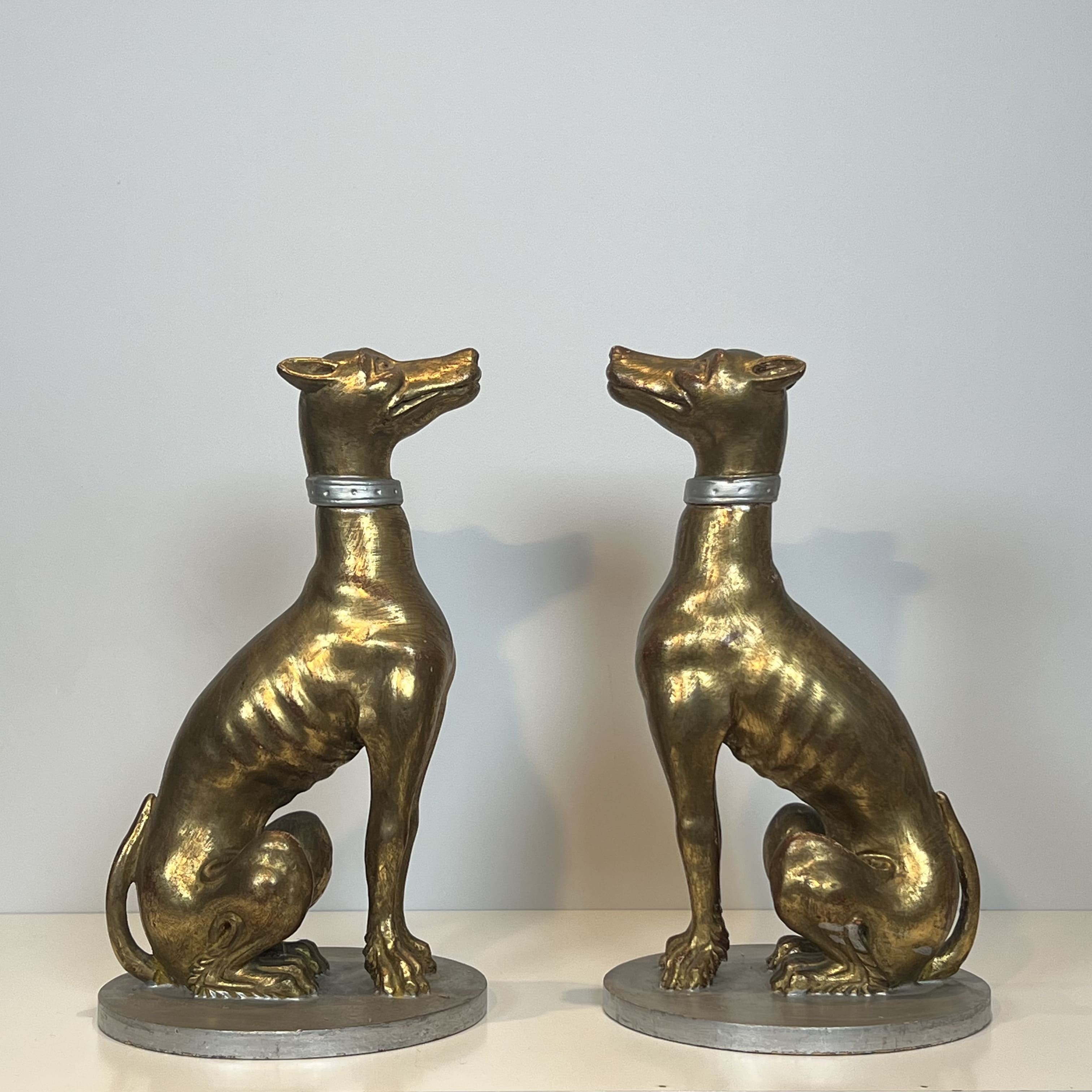 Paire de Sculptures "Lévriers" en Bois Sculpté et Doré, Travail Italien, Milieu du XXe Siècle.